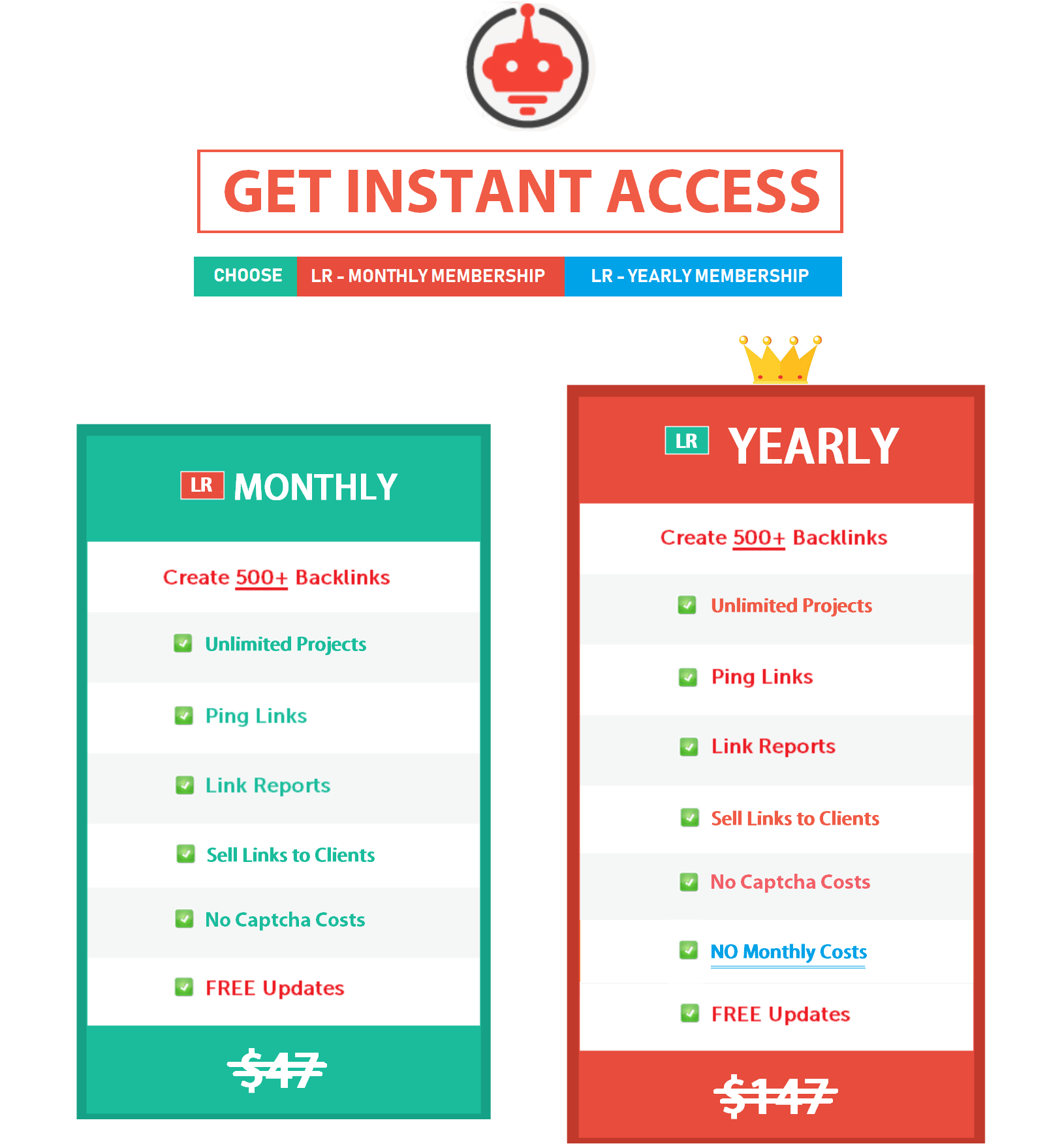LinksRobot creates 500+ redirect backlinks within 3 clicks for Unlimited number of websites, videos, and URLs.